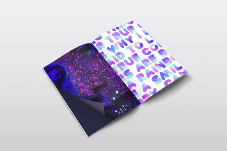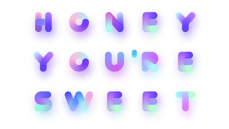 Abelone, as the name suggests, is inspired by the gorgeous iridescence of the marine mollusk Abalone shell. Maria wanted to make the letters very wide to create as much area as possible for the color blending to show through between purple and turquoise. Each character is made from approximately 100 colorful blended circles.