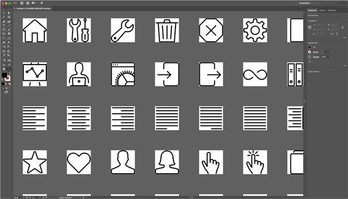So once we have filled up our new document with icons, artboards will allow us to have a perfect overview and organization for the complete set. The basic rules of creating a consistent and unified icon sets are to set up visual rules and apply them to all icons.