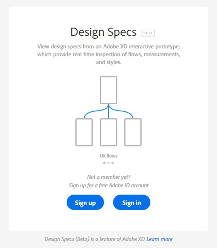 The Design Specs (Beta) feature in Adobe XD speeds up the development process by making it easy for a designer to send a developer a link to automatically generated design specs. A Developer can quickly grab key design information like element height, width, size, alignment, relative spacing, colors, and typography. A developer can also view the sequence and flow of artboards to better understand the experience before beginning development.