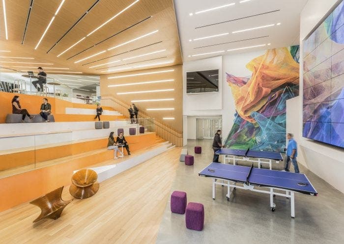 “Our workspaces show off our creative, innovative, and collaborative culture by putting a heavy emphasis on inspirational design and aesthetics that reflect the vibrancy of our brand,” Jonathan Francom, vice president of Adobe global workplace solutions, told Business Insider. “We’ve created a variety of community areas and alternative work spaces that give our employees the ability to choose where and how to work, and provides the opportunity to meet up and collaborate in new ways. At the end of the day, we’re hoping to bring people together and spark innovation.”