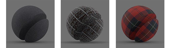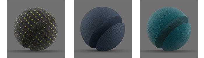 When using 3D textiles, one of the key attributes are the variety of patterns that are available. As a designer, being able to easily choose between herringbone versus straight lines, ornate lace versus simple polyester mesh or polka dots versus rectangle polyester can be a critical to the final composition. This ability to easily change, swap, morph, or modify the surface of a material on a model can take that static artwork and turn it into an enigmatic, interactive space.