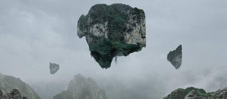 1. Basic (Cut Out). The Basic Brush in the Cut Out Panel is probably my most utilized tool in Photoshop Mix. The Smart Tools are great for quick edits, but they have their limitations. I use the Basic Brush to get more detail for masking work. My floating island is composed of three images — two of which are actually the same mountain mirrored. I needed to shape the island to look less mirrored, so I used the Basic Brush to add some differences in the shaping.