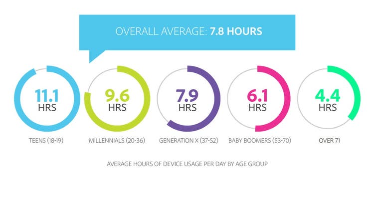 That’s one of many eye-opening findings in a new research report from Adobe, CMO.com’s parent company, which surveyed over 1,000 consumers. The number of digital consumption hours is even higher for the younger generations, such as Millennials, who spend 9.6 hours per day, on average, consuming digital content.