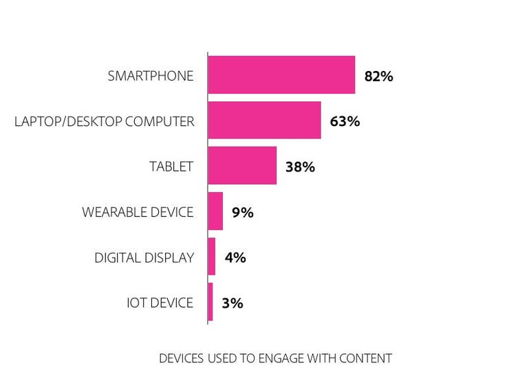 The Adobe survey also found that consumers are not only engaging with digital content more, but 55% are doing so across various devices simultaneously. That speaks to the difficulty of catching their attention. When asked about engaging with content on newer devices, consumers said they expect to engage the most with home entertainment streaming devices and smart speakers/home assistants.