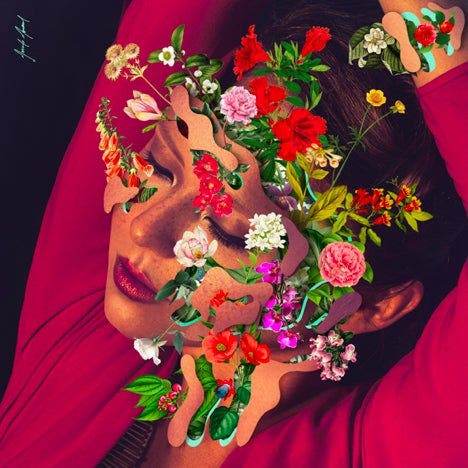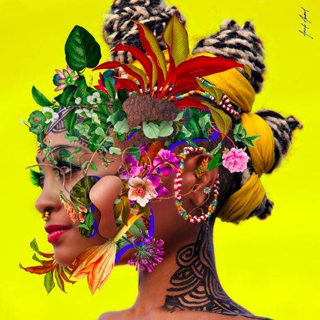 Reign Apiim aka Lashaia Artis. “I took more time to do this edit because there was already a lot to work with from the original photo. I needed to study the shapes a little more to figure out what flowers to use, so that it would not become too oversaturated.”