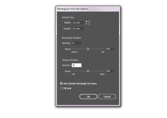 Open the ‘Rectangular Grid Tool Options’ menu by clicking on the artboard.