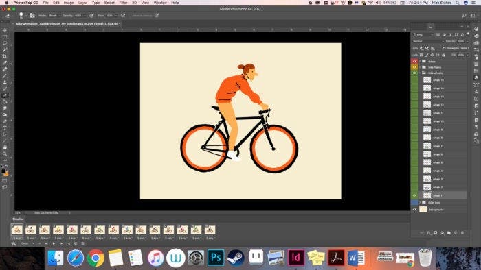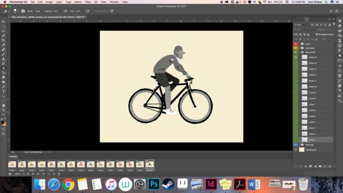 Continue to duplicate layers for frames 3-15, selecting the corresponding rider for each frame. In the end, you should have 15 frames in your timeline with a different rider in each.
