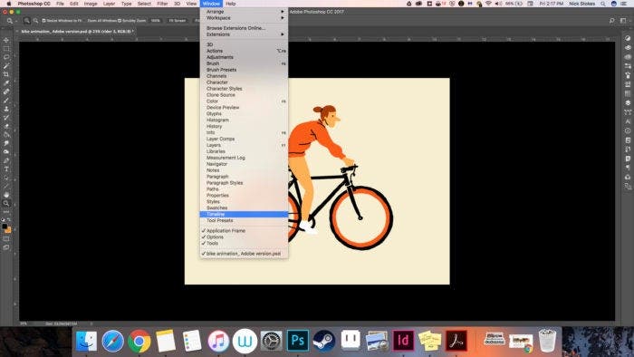 - Select timeline from the window dropdown menu.