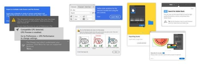 In any given application there are often dozens of screens or panels; hundreds (or thousands, in some cases) of unique icons and cursor states; as well as a mix of messaging like onboarding tutorials, notifications, and feature announcements. It can be a real challenge to solve for patterns that work across that kind of variety.
