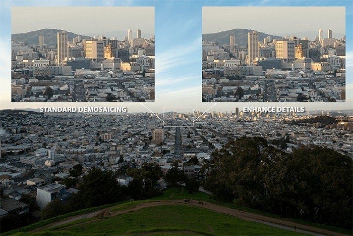 As a result, Enhance Details will deliver stunning results including higher resolution and more accurate rendering of edges and details, with fewer artifacts like false colors and moiré patterns.