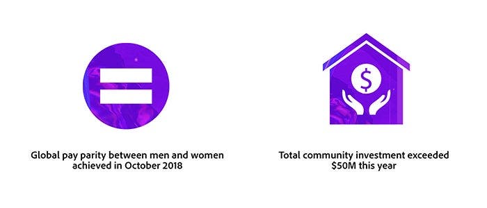 Our commitment to employees and our community is unwavering. In October 2018, we achieved pay parity between men and women employed at Adobe, across nearly 40 countries. We’re committed to fostering a workplace that is diverse and inclusive, where everyone feels valued and is empowered to do their best work. I am proud that we’ve taken this important step toward fair and inclusive recognition of all our employees’ contributions.