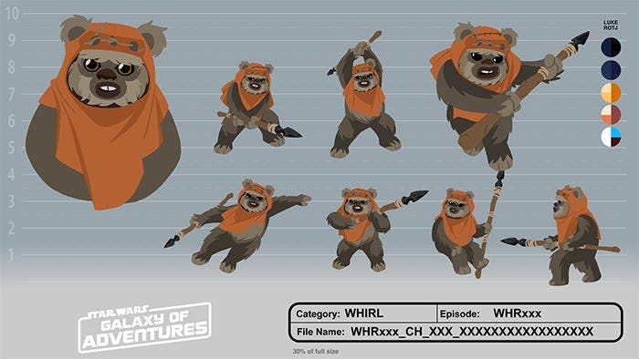 Barry: Titmouse made some shorts for Lucasfilm a few years ago leading up to “The Last Jedi.” They were really cute, fun shorts featuring BB-8. Lucasfilm was a really great creative partner, and the project went really well. They gave us a call when they were looking to do another line of animated shorts for their new “Galaxy of Adventures” brand, which consisted of toys and merch aimed at soon-to-be “Star Wars” fans.
