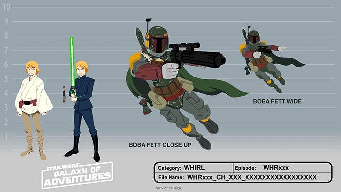 I saw “Star Wars: Galaxy of Adventures” as a Saturday morning cartoon version of “Star Wars.” The challenge was to capture the energy of a world you want to escape to — and present it in 60 seconds, much like the main title sequence from a classic cartoon.