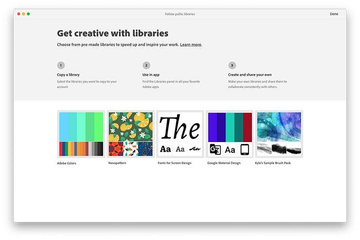 If you’re new to Libraries, don’t worry — we’ve built Library packs for you. You can find them behind the plus button in the top of the left panel by choosing “follow public libraries.”