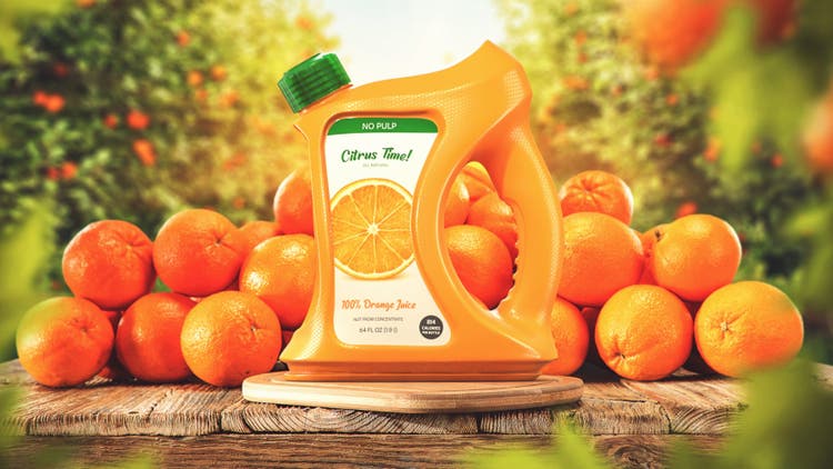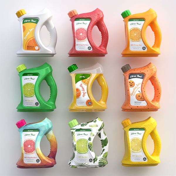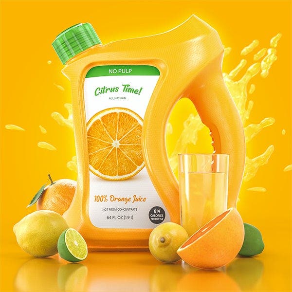 In this article, we’ll explore this product design workflow, using Dimension alongside other new 3D tools in Adobe Creative Cloud to create designs for ‘Citrus Time,’ a fictional brand of fruit juice. Working in this way, a designer could download 3D models from Adobe Stock, create digital materials for them in Substance Painter, import label designs created in Adobe Illustrator, then bring all those ingredients together in Dimension, creating scenes and rendering high quality 3D visualizations. The designer could then use Adobe Photoshop and Adobe Illustrator to iterate on colors and branding.