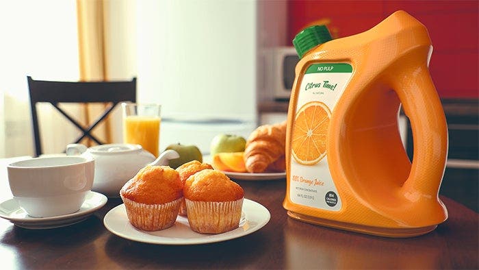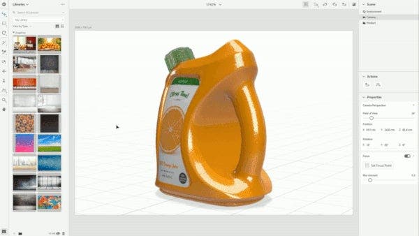 However, the same 3D assets can be used for digital prototyping and marketing work, providing that you export them in a file format suitable for visualization, such as OBJ or FBX. Most CAD applications can do this natively. But even if you don’t have a CAD model, online libraries like Adobe Stock will get you most of the way there, providing a range of readymade 3D bottles, cans, and boxes to choose from. In this example, we’re going to be using the juice jug shown above, which came from Adobe Stock.