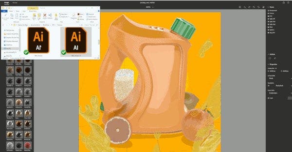 Edits made to a label design in Illustrator transfer automatically to the 3D scene inside Dimension.