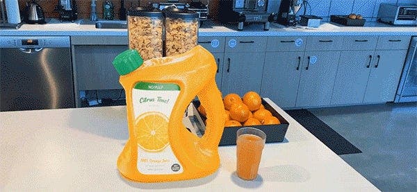 Our juice jug scene, displayed in AR using Adobe Aero.