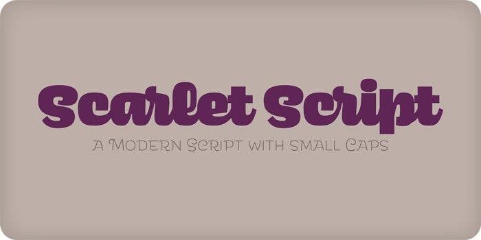 Scarlet Script, a connected script with opulent forms, is the bodacious, fun sibling of the top-heavy sans serif Scarlet.