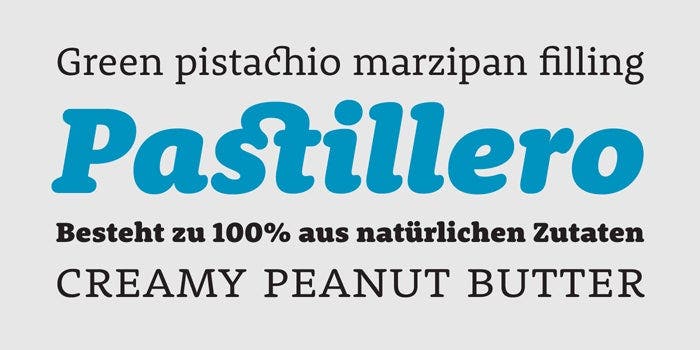 With Rooney, Fromm created a typeface with rounded serifs and stroke endings that doesn’t become too playful or trivial. The design dresses the old-style serif construction — with open letterforms and a moderate contrast — in soft shapes and gentle curves. These properties make text look warm and smooth without taking away from its seriousness. Rooney Sans complements its serif counterpart. While it was developed as a standalone design, it shares the same construction and has identical weights, allowing users to apply the two typefaces in tandem for designing complex projects like newsletters, annual reports, corporate publications, branding and packaging, and other professional communication.