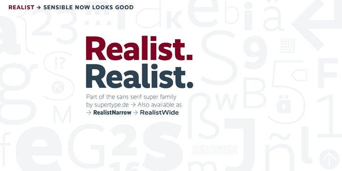 Realist is an all-round sans serif that brings clarity and eminent legibility to a wide range of applications on both print and screen.
