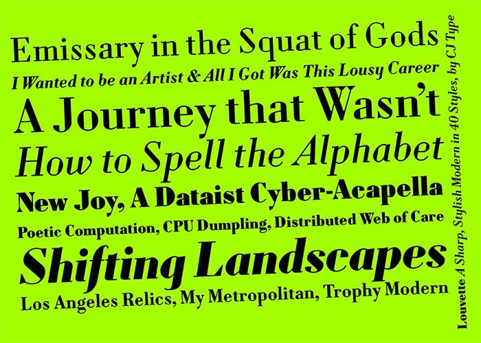Contrasting tense curves against straight lines, Louvette creates a crisp text image.