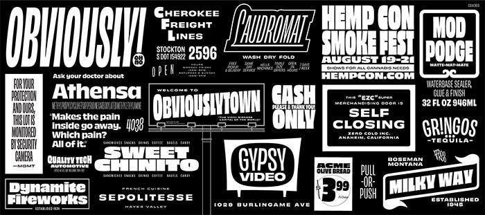 Oh NO Type Co.’s typefaces always brim with personality. Obviously’s exceptionally large x-height and soft finish lends the sans serif a good-natured, joyous air. Its impressive breadth — six widths from the extremely narrow compressed to the generous extended, each in eight weights with matching italics — means the 96-style family can be deployed in many varied applications, from the largest display uses to the tiniest text.