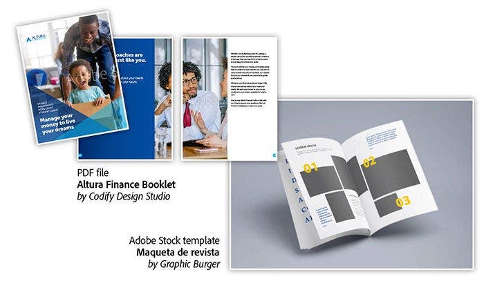 Right template: Maqueta de revista — by Graphic Burger, left file: Altura Financial Booklet — by Codify Design Studio.