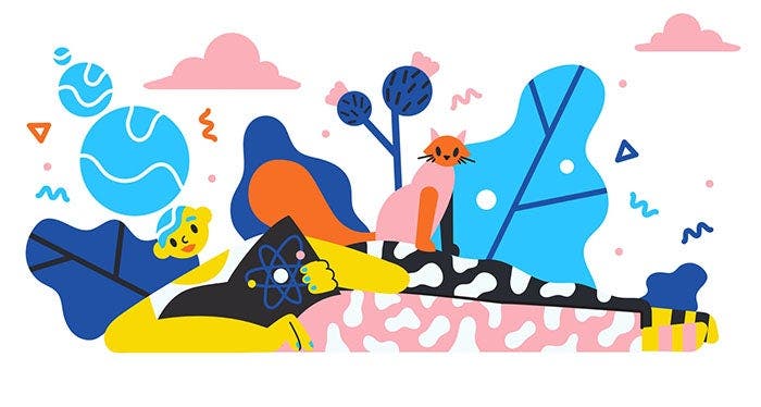 The world of vectors and graphic design has eagerly followed suit. Adobe’s first design trend of the year, Handmade Humanism, captures our retreat to a cozy, colorful world of brushstrokes, soft lines, and matte finishes — designs which, even if they never leave the virtual world, follow this urge to get away from polished mass-produced visuals toward something that feels touched by the human hand. Our collection is full of down-to-earth illustrations of food, lips, faces, and women sunbathing or doing yoga.