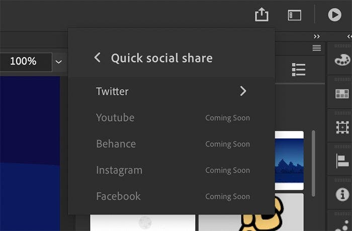Plenty of animators have been asking us for the ability to share animated assets on social media directly from within Animate. This is now possible with our new Quick Social Sharing feature. We are starting with Twitter.