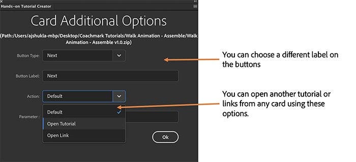 Generating Anchor Node ID is fairly simple. First click on ‘Choose’ and then click on any tool in the Animate UI. It will automatically generate the Anchor Node ID for you. Additionally, you can open another tutorial or a link using the additional options. For additional tutorial, you will need to provide the Tutorial ID for the tutorial you want to link to. Similarly for link, you will need to provide the web link.