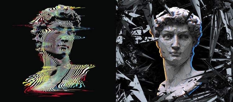 Glitch art (or simply “glitch”) is an artistic sub-genre that focuses on the artifacts and unintentional defects created by technology (the crashes, the blue screens, distortion, and pixilation) and elevates those artifacts to become a central subject or design motif. And glitch is yet another key element of Modern Gothic design.