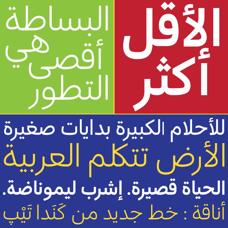 More and more foundries are exploring Arabic type design. Canada Type, for example, has produced Anaqa, a contemporary Arabic companion to the popular Semplicita. During Anaqa’s development, it became clear that the typeface also works with other humanist sans serifs like Gibson, Informa, and Davis Sans.