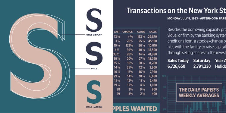 Designed for excellent legibility and optical balance with a subtle nod to classic French sans serifs, Kontour’s Utile and Utile Display are subtly flared typefaces in two finishes suited for immersive reading and matching display typography. Their economic sibling Utile Narrow packs more text into a line.