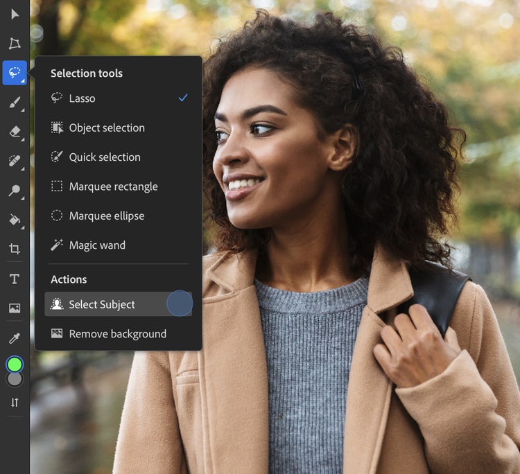 Leveraging Adobe’s AI technology, our Select Subject model can now identify photos of people, animals, objects and more, perfectly selecting and refining small details like wisps of hair and edges of clothes. And best of all, this is done in only one tap.