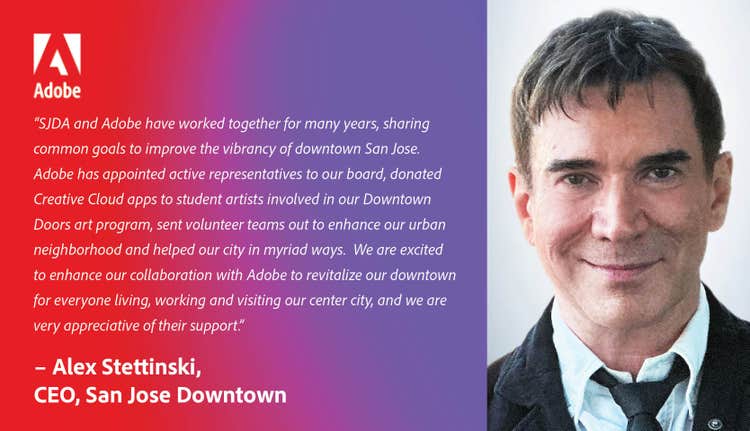 Adobe has called San José home since 1994, when we became the first major technology company to move our corporate headquarters to downtown San José. And over the years, as a company who values being involved in the communities where we work and live, we have supported many San José institutions through direct support to community nonprofits — from Adobe Foundation grants and company contributions, including employee matching grants to product donations, employee volunteering, pro bono consulting and board service.