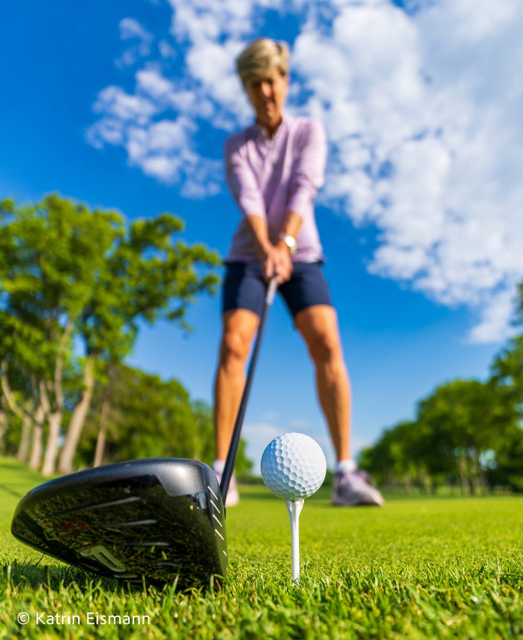 With the focus on the golf ball the shallow depth of field abstracts the athletic golfer. © Katrin Eismann.