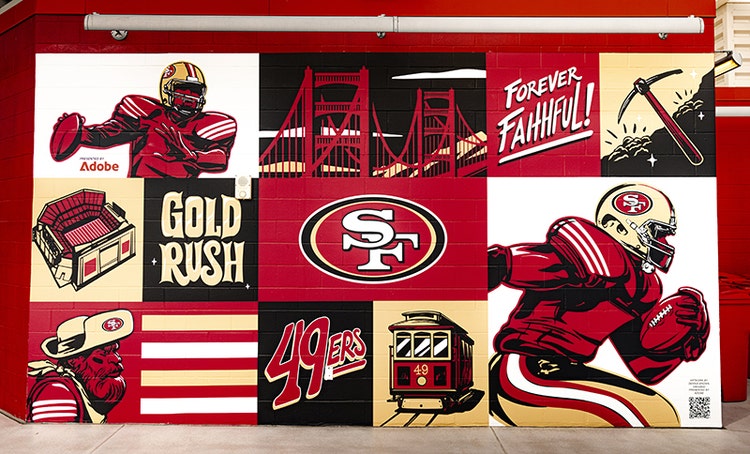 Starting November 17, fans can experience the new murals up close at Levi's Stadium. And don't miss your chance to enter the Adobe x 49ers sweepstakes for a shot at winning game tickets, merchandise, and more.
