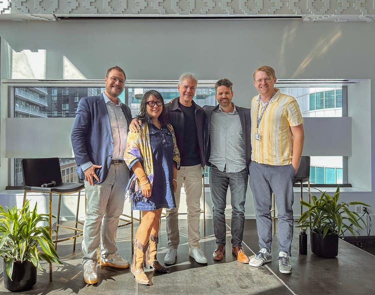 From left to right: Pietro Gagliano, founder & CCO, Transitional Forms; Hannah Elsakr, VP of Global GenAI New Business Ventures, Adobe; Ed Ulbrich, head of Strategic Growth & Partnerships, Moonvalley; Ryan Patterson, director, GRAiL; and Todd Terrazas, co-founder of FBRC.ai at “Spotlight: The Next Wave of AI Filmmaking: Smarter, Safer & Better” at TIFF.