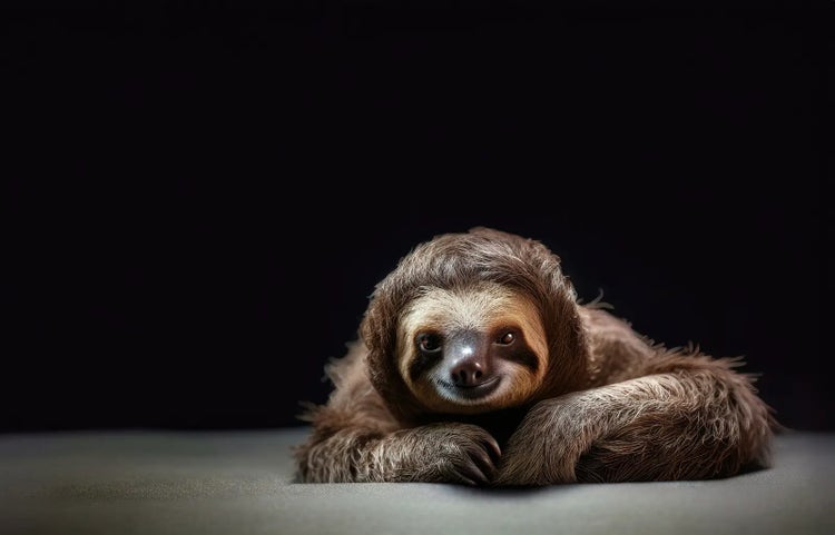 Prompt : portrait cinématique d’un paresseux, pris sur un cyclorama noir.