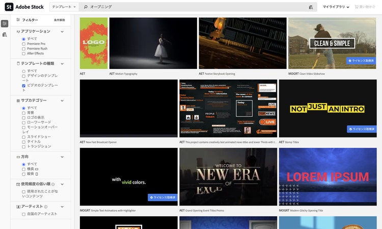 Adobe Stock 内の Premiere Pro 用テンプレート