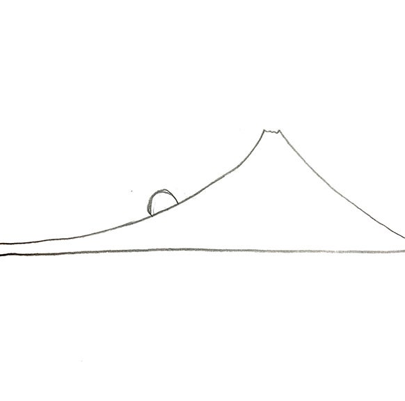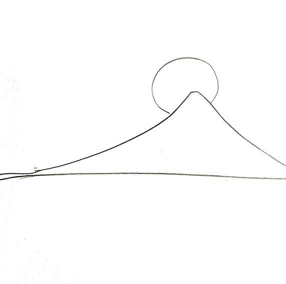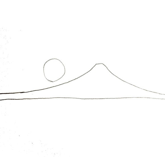 富士山の横に太陽がはっきりと見える、手書きのラフスケッチ ↓ を描きました。この画像をアップロードして、構成参照に使用します。
