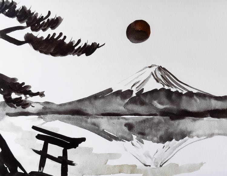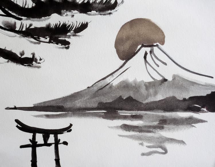 まず生成されたのは、水墨画のような雰囲気の画像です。やや暗めの印象のせいか、少しもの悲しい気持ちにさせられます。