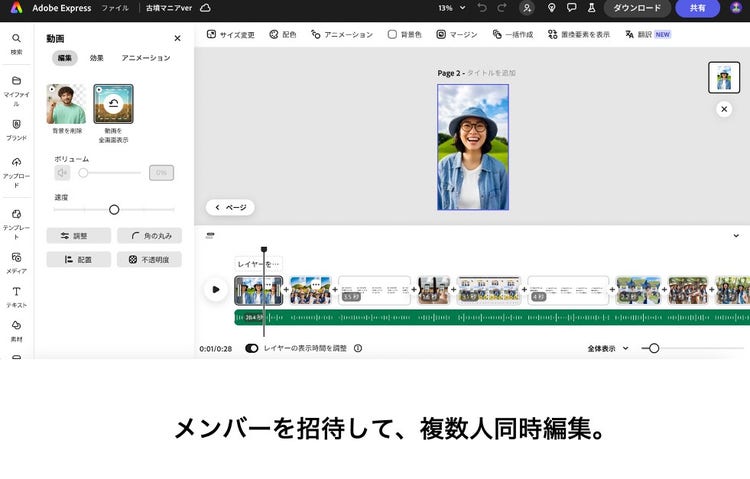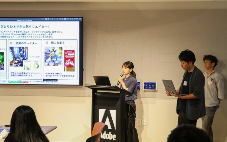 一部のチームは Adobe Express を資料作成や動画編集に使用しました。Adobe Express は、誰でも簡単にコンテンツを制作できるデザインツールです。ブラウザさえ開けば使える手軽さと、デザインに必要な全ての基本機能を一か所で使える便利さが、チーム作業に大きく役立ちます。