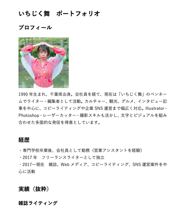 SNS運用の項目にならって、ライティングの項目も修正してみました。ただ実績を並べるだけよりも、本気度と説得力が増した気がします。