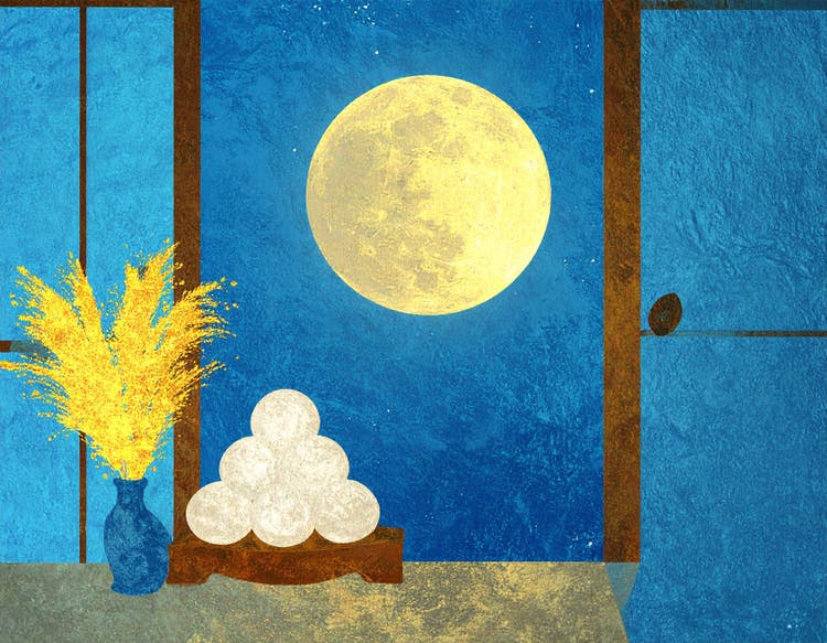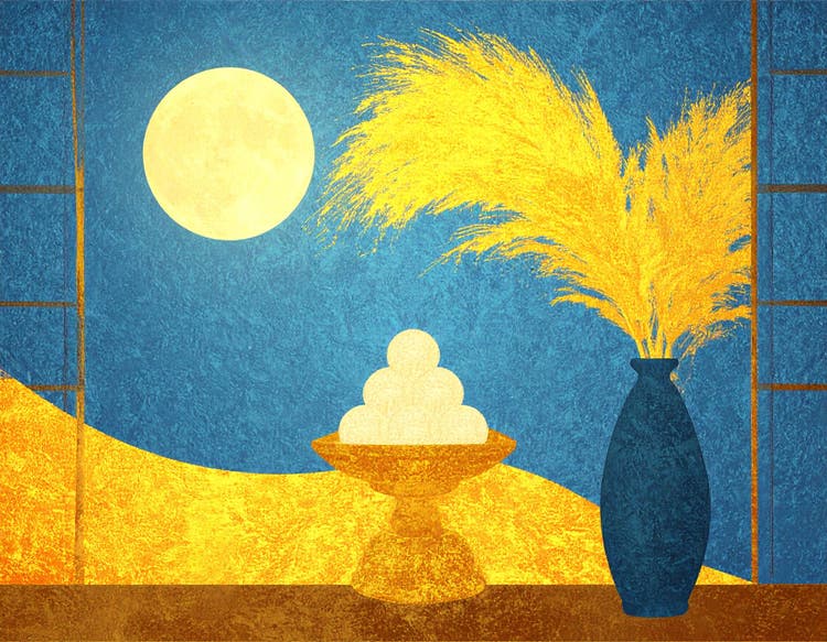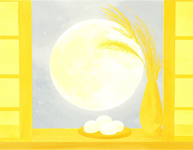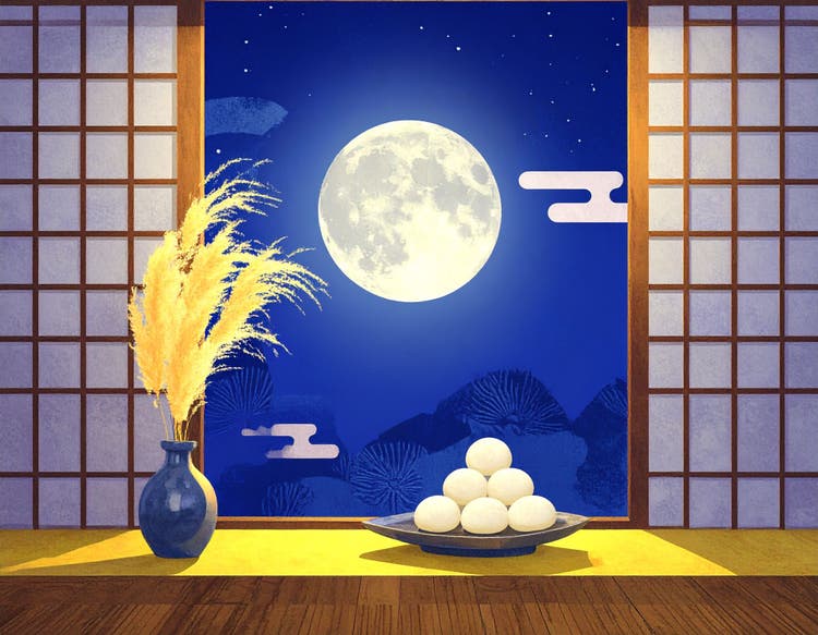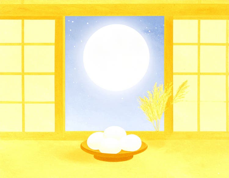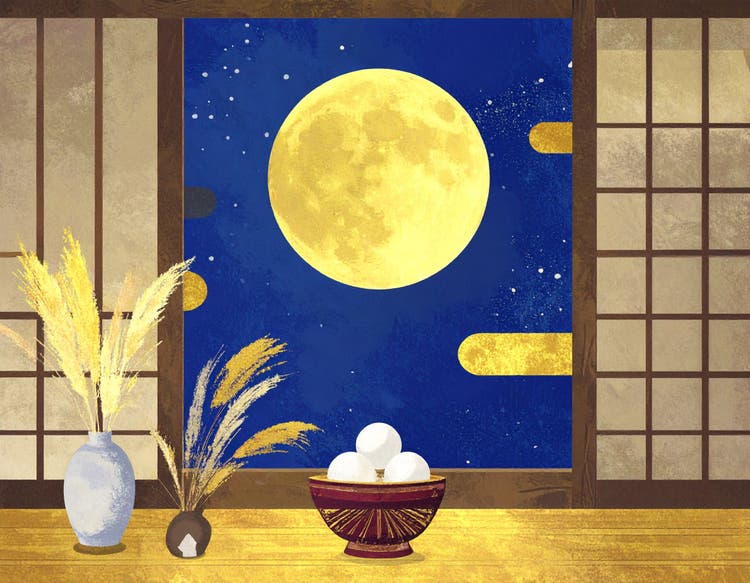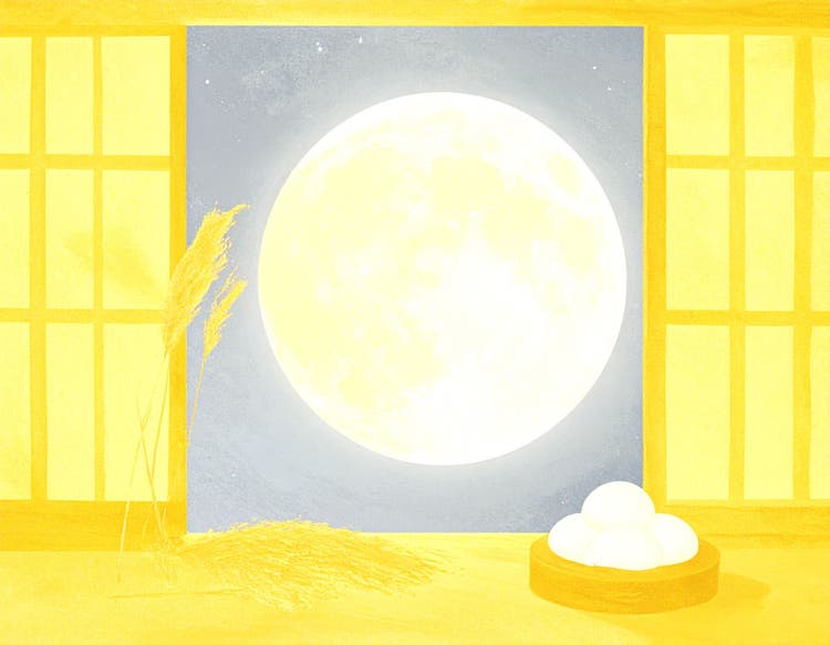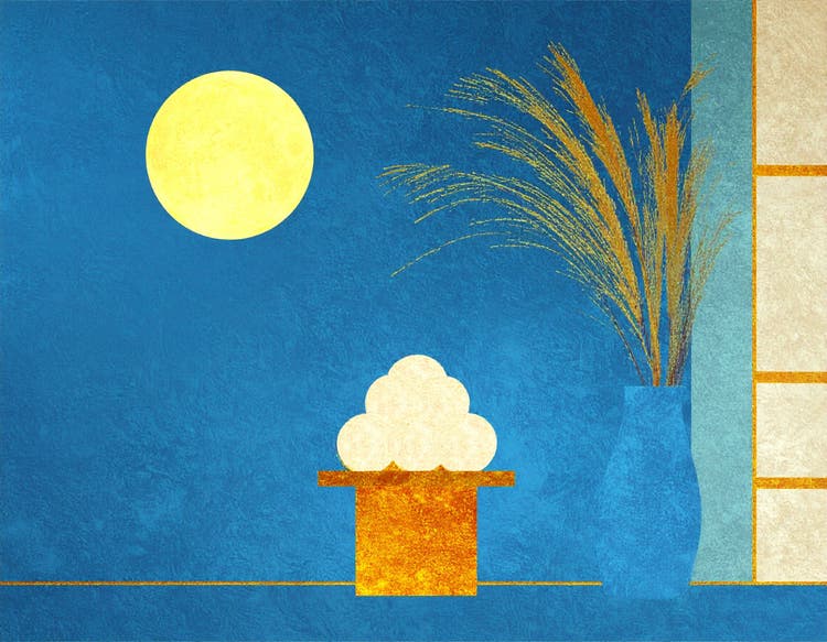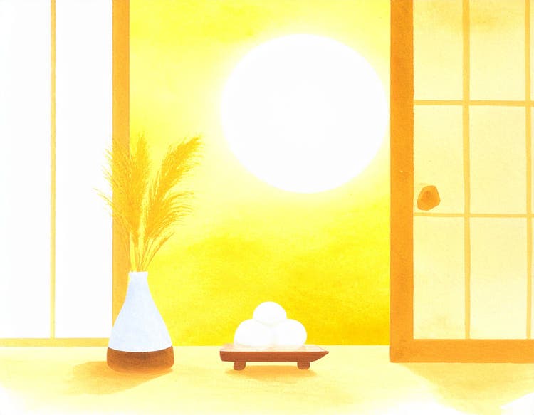 和室から障子越しに月と団子とススキを眺める風景を生成したいと思います。プロンプトは「和室。開いた窓から輝く満月が見える。左右に障子。窓辺にはススキの花瓶と、台に積み上げられた白いお月見団子。」です。