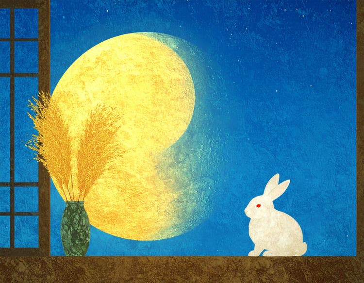 最初のフレームに上 ↑ の画像を指定します。プロンプトは、「秋の夜のお月見の情景。大きな満月が夜空に輝き、月明かりがほのかに揺らめき、柔らかな光が広がる。花瓶に活けられたススキが夜風にそよぎ、穂先がさわさわと揺れる。ウサギはときどき耳をぴくっと動かす。幻想的なアニメーション。」です。カメラには「チルトアップ」を指定します。