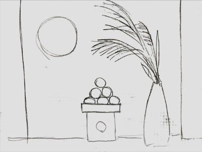 花瓶とススキの場所や形状は指定通りですが、団子を乗せる三方は生成されません。さらに左は、月のサイズがスタイル参照の画像に近くなってしまいました。とはいえ、ススキがいい具合に影になっている面白い色味の絵ではあります。