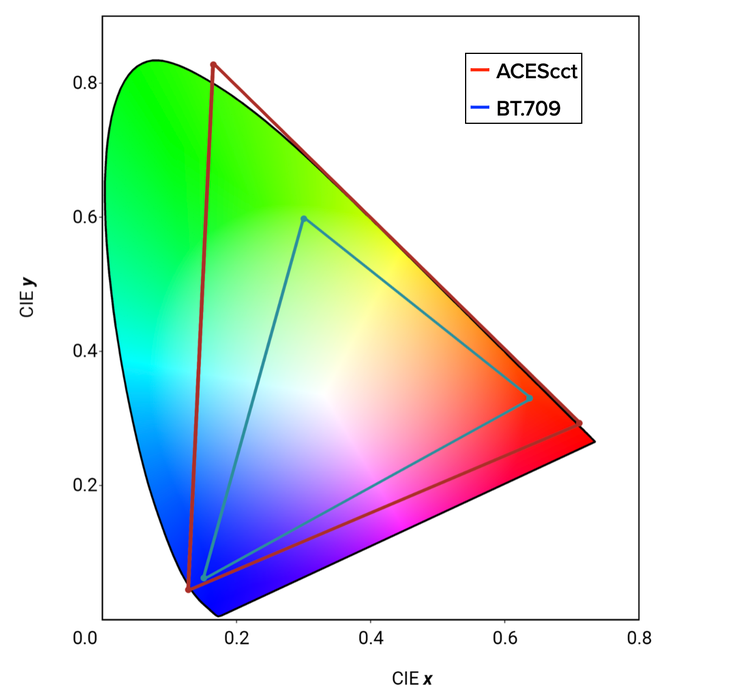 広大な色域と、ダイナミックレンジの広い色空間であることから、ACESワークフローで作業する際のカラーグレーディング用色空間に適しています。