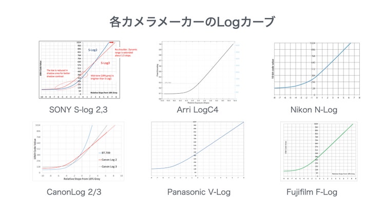このようにCineon Logは、フィルムをデジタル化し、編集する過程を効率化するために生まれました。そしてこの技術は、その後の2010年代初頭から始まるデジタルシネマカメラの進化とともに、カメラ内に実装されるようになります。その後、カラーグレーディングソフトなどの発達とともに、Log撮影技術の発展の礎となり、現在のシネマカメラやミラーレスカメラに搭載される様々なLog形式(例:S-log、Canon Log、F-Logなど)の基礎となっています。
